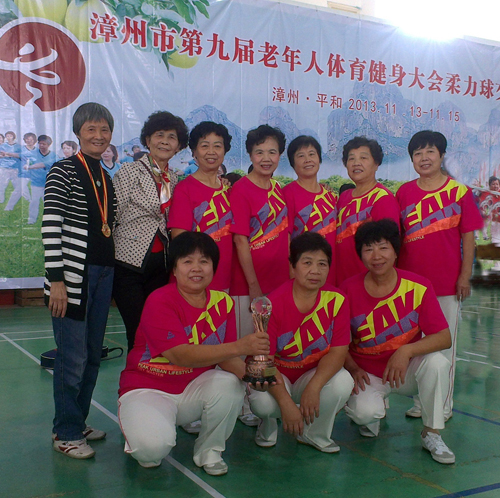 2013年11月15日,市第九屆老年人體育健身大會第二階段柔力球交流展示活動在平和縣正興學校體育館圓滿結束。整個交流活動洋溢在其樂融融的氛圍之中,老年朋友們各個神采奕奕、容光煥發,場上時不時傳來一陣陣掌聲喝彩。公司退休員工朱金蘭、洪亞珍等組成的經貿代表隊也參加了此次比賽,并用她們整齊優美的動作和精湛的技藝奪得本次比賽的銅獎。