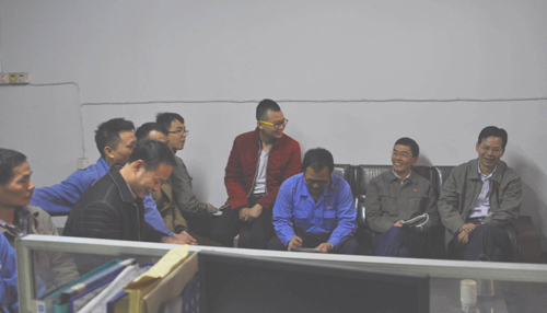 ????在成品一車間,陳副書記以普通黨員的身份參與車間黨的十九大精神學習討論會。他分析了公司面臨的內外部環境及生產經營情況,結合自己切身體會,對黨的十九大精神的豐富內涵、精神實質進行了全面闡述和系統講解,強調要把黨的十九大精神落到實處,要充分發揮基層黨支部的戰斗堡壘作用,充分發揮好共產黨員的模范帶頭作用。在生產經營中堅持質量第一、效益優先,推動質量、效率、動力三大變革,在2017年公司取得較好成績的基礎上再接再厲,爭取2018年更上新臺階。