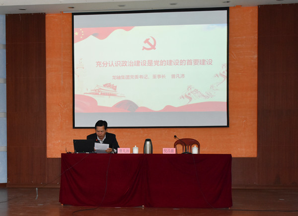 為進一步興起習近平新時代中國特色社會主義思想 “大學習”熱潮,2018年12月28日晚,龍軸集團在俱樂部會議室組織開展專題黨課講座。集團黨委書記、董事長曾凡沛作了題為《充分認識政治建設是黨的建設的首要建設》專題黨課,同時邀請漳州市國資委副調(diào)研員倪昌源講授《<習近平新時代中國特色社會主義思想>三十講學習心得》。集團高管、各黨總支、黨支部書記及支委、中層以上管理人員共130余人參加了黨課學習。