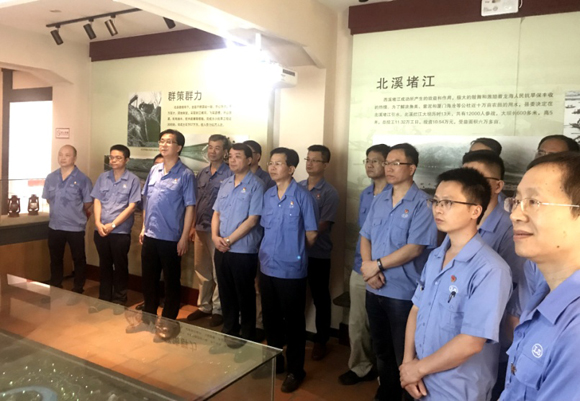 ????活動開始,大家整齊列隊,在公司黨委書記、董事長曾凡沛的領誓下,大家在黨旗下重溫入黨誓詞。接著,大家參觀“龍江精神”展示館。通過引導員詳細的講解,認真參觀了珍藏于展示館的實物、板報、圖樣、照片,更加深入地感受1963年榜山公社洋西大隊的抗旱斗爭。當年,在老一輩共產黨員的帶領下,全村上下舍小家、顧大家,放棄窯磚的副業收入,淹掉村里1300畝低水田,積極投身到萬人堵江、截流抗旱的戰斗中,為灌溉下游10萬畝高產良田做出巨大犧牲。