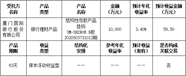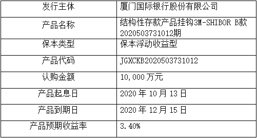- 委托理財(cái)受托方:廈門(mén)國(guó)際銀行股份有限公司(以下簡(jiǎn)稱“廈門(mén)國(guó)際銀行”)。