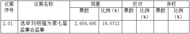本次股東大會審議的議案二投票采用累積投票制表決,此議案的表決情況僅統(tǒng)計列示表決同意數(shù)。