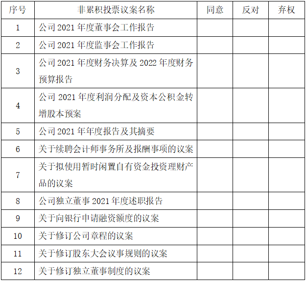茲委托       先生(女士)代表本單位(或本人)出席2022年5月20日召開的貴公司2021年年度股東大會,并代為行使表決權。