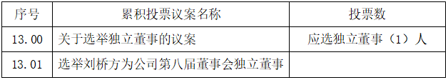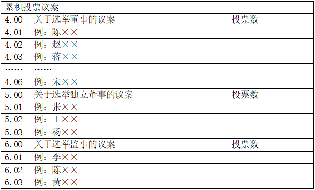 三、股東應以每個議案組的選舉票數為限進行投票。股東根據自己的意愿進行投票,既可以把選舉票數集中投給某一候選人,也可以按照任意組合投給不同的候選人。投票結束后,對每一項議案分別累積計算得票數。
