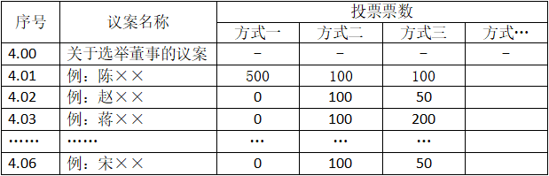 該投資者可以以500票為限,對議案4.00按自己的意愿表決。他(她)既可以把500票集中投給某一位候選人,也可以按照任意組合分散投給任意候選人。