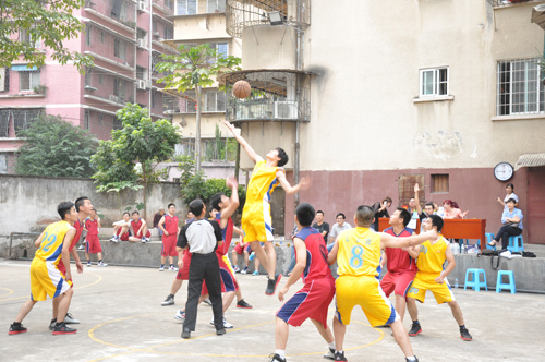 2014年10月24日下午,經過多日角逐,“龍軸奮進杯”職工籃球賽決賽在部室隊與后勤聯(lián)隊兩支隊伍間激烈的進行著。兩支隊伍均實力強勁,雙方你來我往,互不相讓,比分交替上升,現(xiàn)場氣氛非常緊張熱烈,隊員們激烈拼搶,在場觀眾們亦情緒高漲,精彩的進球時的喝彩聲此起彼伏。