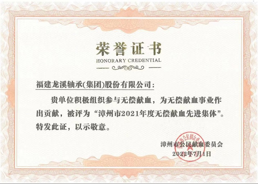 近日,漳州市公民獻(xiàn)血委員會辦公室授予龍軸集團(tuán)“漳州市2021年度無償獻(xiàn)血先進(jìn)集體”稱號,同時(shí)授予高鄭峻“漳州市2021年度無償獻(xiàn)血個(gè)人促進(jìn)獎”稱號。