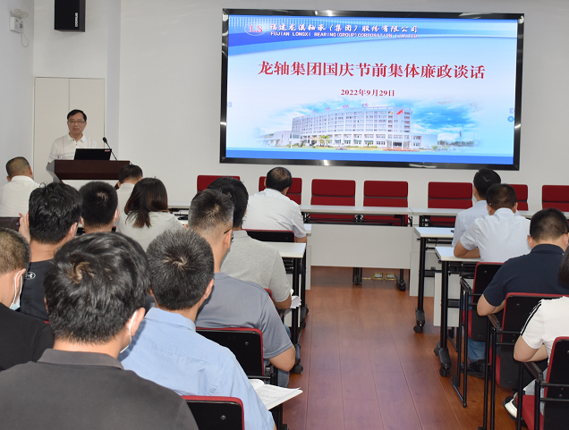 為進(jìn)一步促進(jìn)黨員領(lǐng)導(dǎo)干部廉潔自律,持續(xù)凈化良好節(jié)日風(fēng)氣,以實(shí)際行動迎接黨的二十大勝利召開,9月29日,龍軸集團(tuán)召開國慶節(jié)前集體廉政談話,將監(jiān)督關(guān)口前移,及時(shí)“提神補(bǔ)鈣”,擰緊廉政“發(fā)條”,筑牢廉潔第一道“防火墻”。