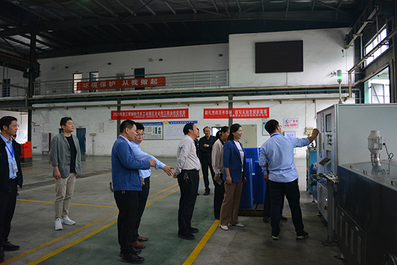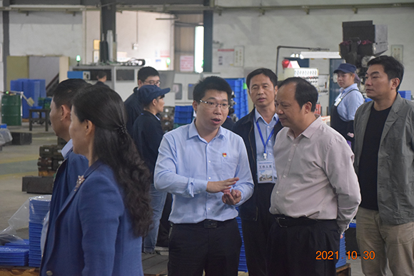▲龍軸集團(tuán)永軸公司黨委書記、董事長吳岳彬陪同三明市總工會(huì)、永安市總工會(huì)、三明埔?guī)X汽車工業(yè)園區(qū)管委會(huì)領(lǐng)導(dǎo)參觀永軸公司廠區(qū)并詳細(xì)介紹數(shù)控磨加工及智能檢測(cè)連線設(shè)備情況