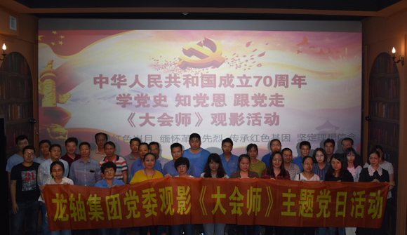 為迎接新中國成立七十周年,學習黨的十九大精神,深入貫徹落實習近平同志關于“用黨的歷史教育黨員、教育干部、教育群眾尤其是教育青少年”的重要指示要求,龍軸集團黨委于2019年5月24日開展主題黨日活動,組織60名黨員在幾何影院觀看紅色愛國主義題材教育電影《大會師》。