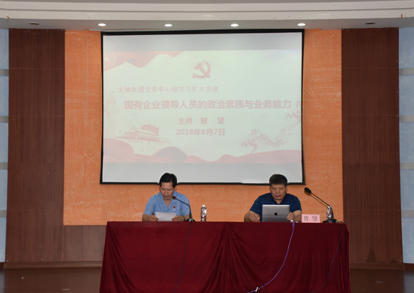2018年8月7日,集團黨委召開黨委中心組學習擴大會,邀請全國黨建研究會特邀研究員、國務院國資委直屬機關黨委原常務副書記曾堅作“國有企業領導人員的政治素質與業務能力”專題講座。會議由集團黨委書記、董事長曾凡沛主持,集團高管、黨委委員及紀委委員,各黨總支、黨支部書記及支部委員,中層以上管理人員參加會議。