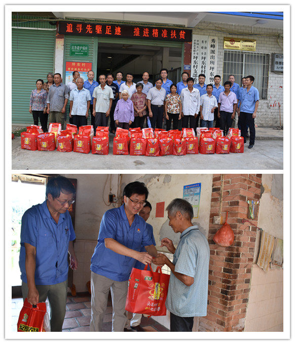 緊接著大家馬不停蹄趕赴掛鉤聯系村平和縣秀峰鄉坪東村,與村兩委及部分貧困戶代表促膝長談,了解脫貧情況、探討脫貧思路、謀劃脫貧實招。然后在公司駐村第一書記曾鎮明的引導下走訪了部分貧困戶,并向他們捐贈了物資。