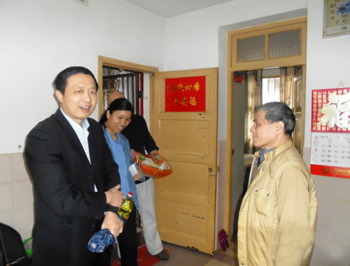2013年4月28日,五一勞動節(jié)前夕,市國資委開展機關干部掛鉤幫扶困難群眾活動,陳偉成等6位國資委干部在公司工會領導張?zhí)┥⒑辂惲岬鹊呐阃拢咴L慰問了我司6戶困難職工,了解他們的生活、健康情況,為他們送去米、油等生活用品。