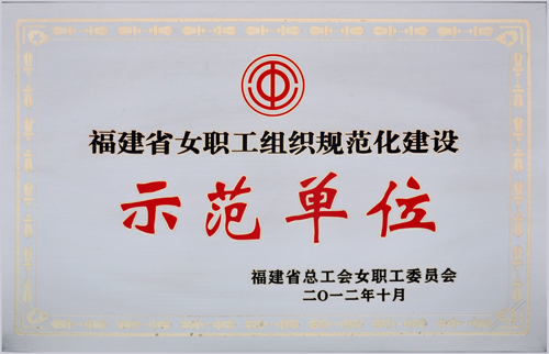長期以來,公司女職工委員會以《中國工會章程》、《福建省女職工勞動保護條例》、《企業(yè)工會工作條例》為指導,團結和帶領廣大女職工積極投身到生產經(jīng)營和各項工作中,深入開展了豐富多彩的各項活動,充分發(fā)揮女職工在企業(yè)建設中的作用,為公司持續(xù)、穩(wěn)定、協(xié)調發(fā)展做出了積極的貢獻。被評為福建省首批“女職工組織規(guī)范化建設示范單位”。