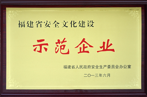 近日,公司被福建省政府授予“安全文化建設示范企業(yè)”榮譽稱號。這是對我司以安全文化促管理,以安全文化促發(fā)展,努力構建安全型企業(yè)工作又一重要肯定。回顧創(chuàng)建歷程,這是公司全員參與、共同努力的成果。